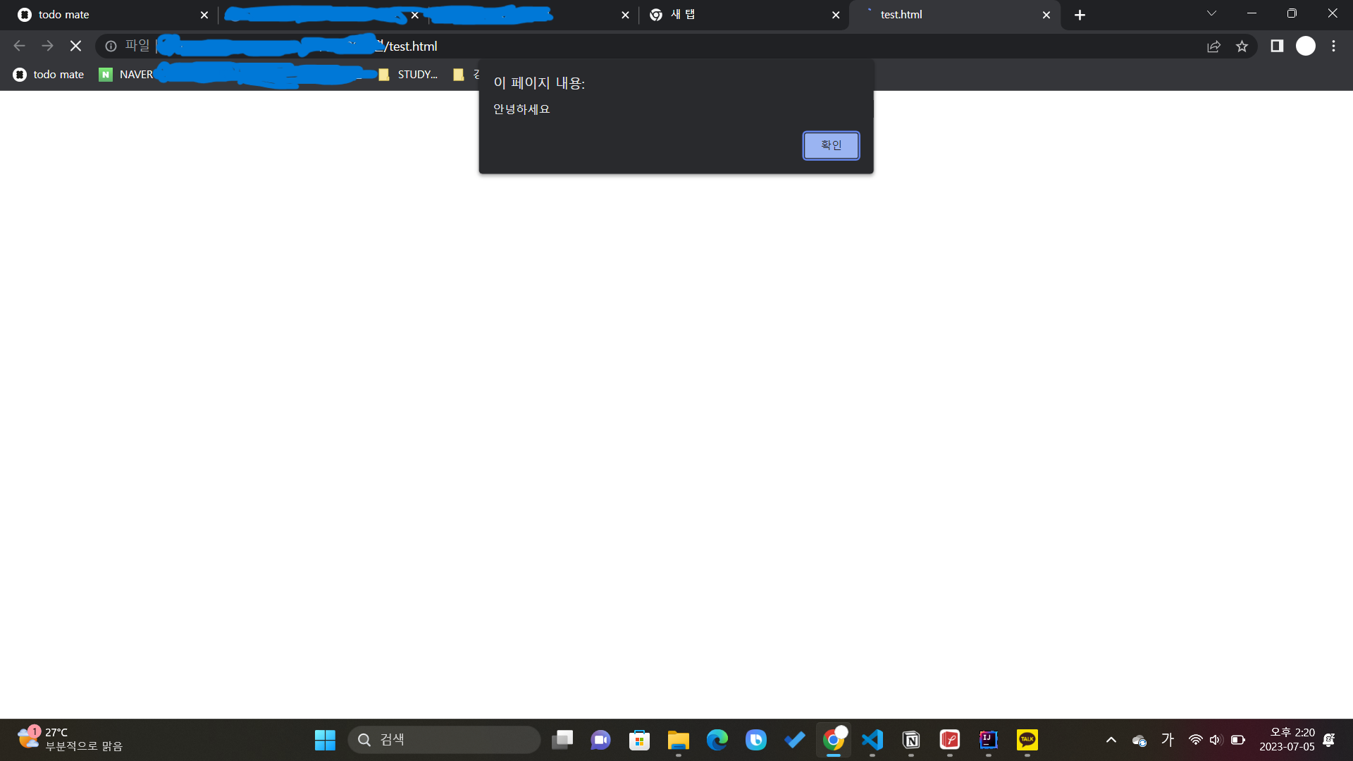 - 경고창에 출력하기