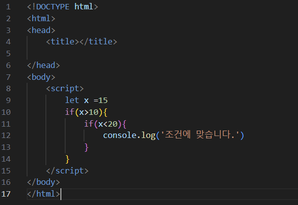 우선 임의로 x값을 15로 설정하면 중첩 조건문에서 조건에 맞는다고 뜬다.