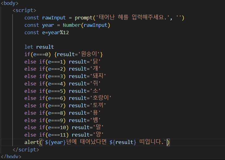 실행화면! 두 소스코드 다 같은 화면이 출력되고. 태어난 해는 임의로 넣었당 ㅎ
