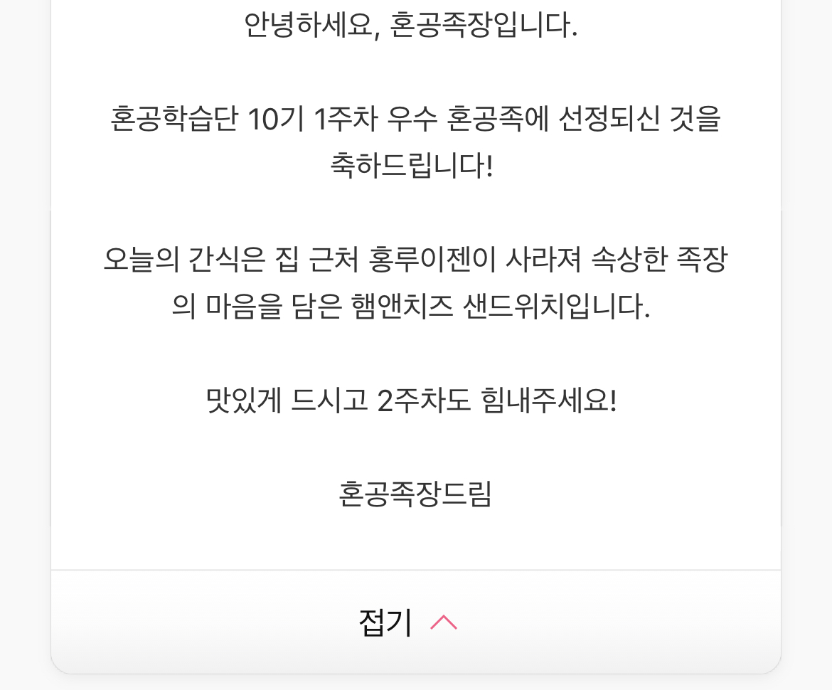 우선 1주차 우수 혼공족 선정이 되었다!